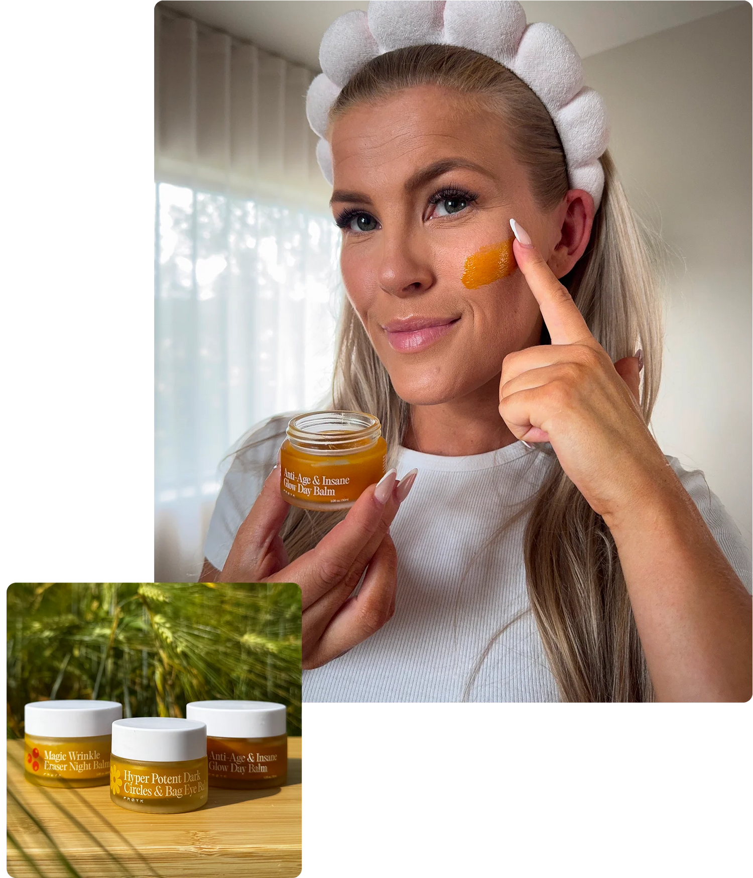 Apply a thin layer of the Anti-Age Balm to your face in the morning. It’s super potent: you only need a tiny amount.