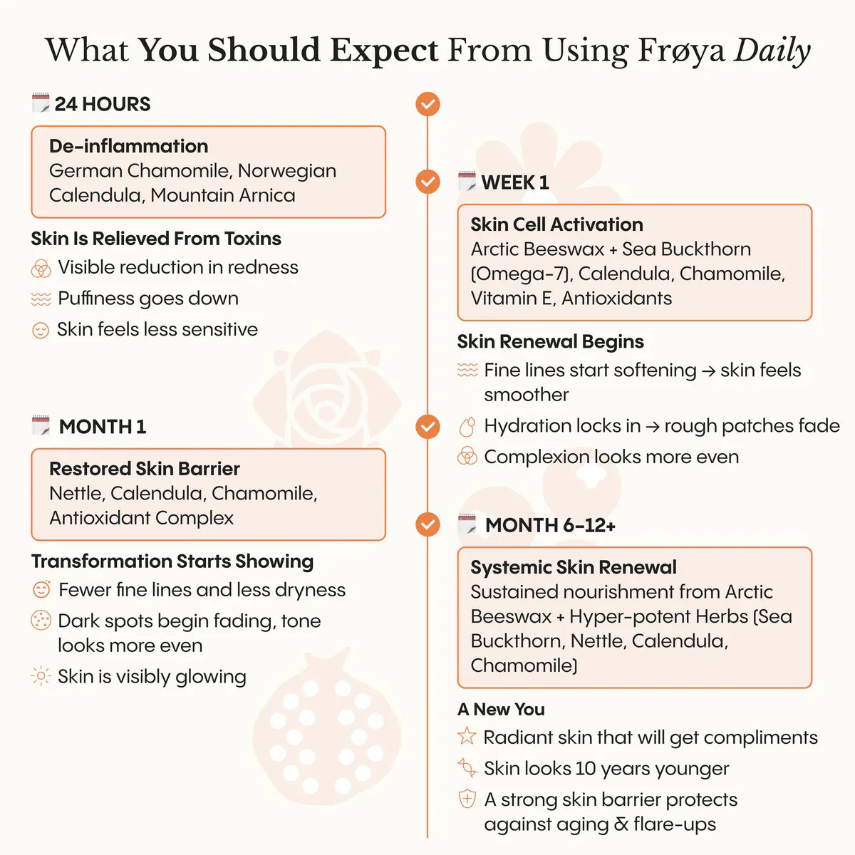 SO surprised that this product lineis this effective after 3 weeks ofuse! i've tried MANY other naturalproducts as well as prescriptiontopicals and skin freatments -nothing has come close to theresults I'm getting with Froya! Myskin feels so much smoother andhealthier, something l haven'texperienced since l was muchyounger. At almost 40,l can seewhy Froya is life changing for somany. Really grateful to havecome across this product andcan't wait to see my results at 60days!